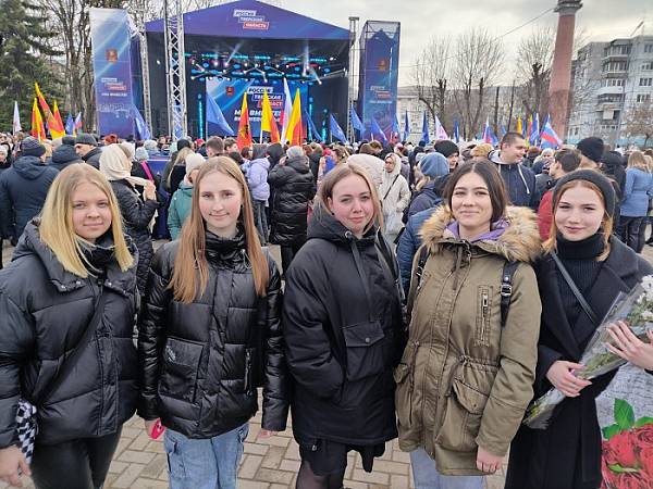 18 марта в Твери на площади Славы прошел фестиваль «Крымская весна», приуроченный к 10-й годовщине воссоединения Крыма и Севастополя с Россией. Студенты колледжа приняли в нем участие в качестве зрителей. Открыли фестиваль участники Движения Первых, студия вокал-дэнс "Ассорти", продолжили Хор Русской Армии, хор «Русский формат», певица Валентина Бирюкова и другие исполнители.