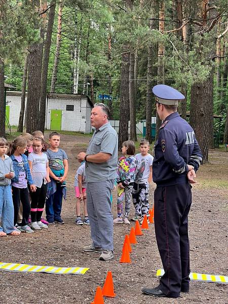 29.06.23 Сотрудники Центра по профилактике детского дорожно-транспортного травматизма совместно с представителями ГИБДД Калининского р-на провели занятие «Основы безопасности на дороге» в летнем загородном лагере «Спутник».
