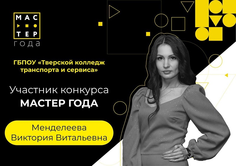 Преподаватель специальных дисциплин нашего колледжа Виктория Витальевна Менделеева успешно выполнила задания отборочного этапа Всероссийского конкурса среди педагогических работников системы среднего профессионального образования «Мастер года» и начала подготовку к региональному этапу, который пройдет в апреле. Участники конкурса представят открытый урок на оценку жюри.