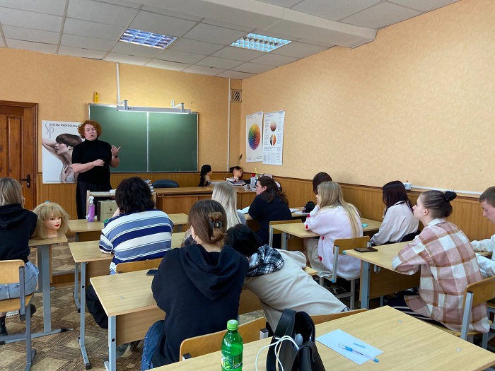 1 апреля 2024 года компания «Индустрия красоты» провела первое занятие по теме: «Уход за волосами» из цикла мастер-классов для студентов специальности Технология парикмахерского искусства. Технолог-эксперт компании «Estel» Егорова Наталья провела теоретический курс проведения спа-процедур ухода за волосами. На практической части студенты отрабатывали процедуры восстановления волос, увлажнения и питания, придания гладкости волосам, заряжали волосы энергией.
