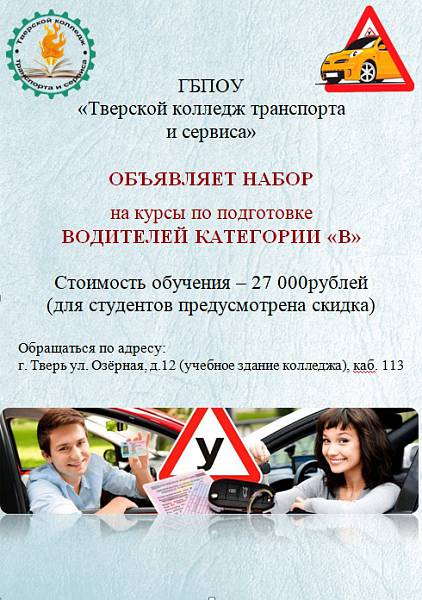 Набор на курсы по подготовке водителей категории B