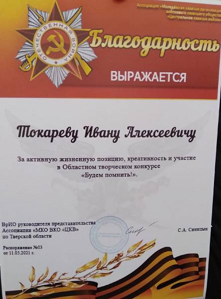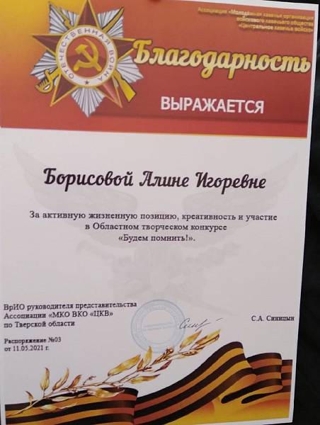 14 мая 2021 года студенты группы 1ГД2 Борисова Алина и Токарев Иван приняли участие в церемонии награждения победителей и участников Областного творческого конкурса "Будем помнить". Ребята читали стихотворения, посвященные Великой Отечественной войне.