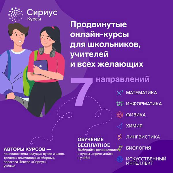 Команда авторов и методистов Сириус.Курсов продолжает формировать полную линейку курсов по естественно-научным предметам с 7 по 11 класс. Все курсы разрабатываются в единой концепции, проходить их можно в удобном темпе, выстраивая собственную образовательную траекторию.