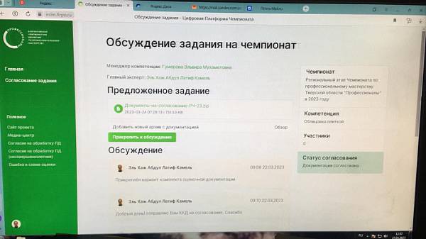 Продолжается работа по подготовки документации Чемпионата. Главным экспертом компетенции согласовано конкурсное задание с менеджером компетенции.