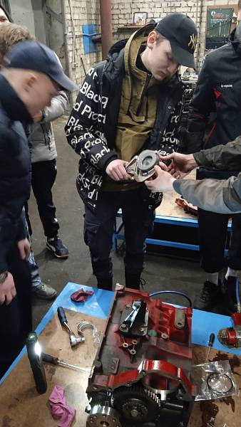 15 февраля 2023 года у студентов первого курса профессии 23.01.07 Машинист крана (крановщик) урок учебной практики прошел на предприятии партнера-работодателя ООО «Верхневолжское автотранспортное предприятие». Под руководством мастера производственного обучения колледжа и слесаря автотранспортного предприятия студенты выполняли виды работ по сборке двигателя «Камминс» автотранспортного средства: устанавливали в блок цилиндров детали цилиндропоршневой группы. Обучение на предприятии будет продолжено.