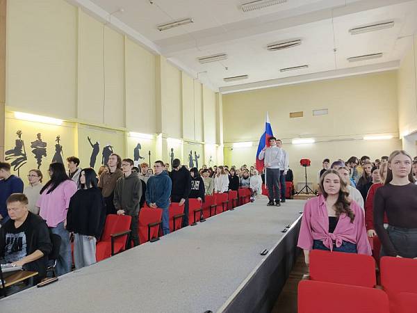 Занятия по традиции начались с выноса государственного флага и исполнения гимна РФ.