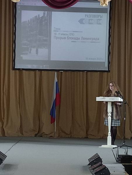 16 января 2023 года в рамках проведения цикла классных часов «Разговоры о важном» в колледже прошли занятия на тему «Прорыв блокады Ленинграда». В эти дни наша страна вспоминает страшные события, произошедшие в годы Великой Отечественной войны – блокаду Ленинграда. Окруженный со всех сторон город пытался выжить – просто выжить, физически, почти без еды, почти без электричества, порой без тепла в самый лютый мороз, под постоянными обстрелами мирных жителей. И это на протяжении почти 900 дней. Лишь 18 января 1943 года блокадное кольцо было прорвано (в этом году в январе исполняется 80 лет с даты прорыва блокады).