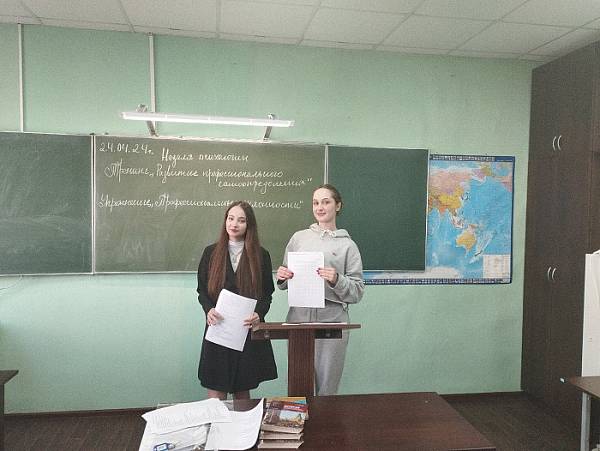 Всю неделю в колледже проходят тренинговые занятия в рамках недели психологии. Педагог-психолог колледжа Фалькова М.И. со студентами проводит тренинги, направленные на развитие навыков жизнестойкости, навыков общения, социальной гибкости и дружелюбия, развитие профессионального самоопределения. Студенты учатся актуализировать личностные ресурсы, формировать позитивные социальные установки и конструктивные способы взаимодействия, а также развивают навыки профессиональной самопрезентации.