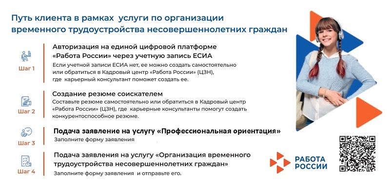 · Подать заявление на получение государственной услуги по организации временного трудоустройства несовершеннолетних граждан в возрасте от 14 до 18 лет в свободное от учёбы время - инструкция.