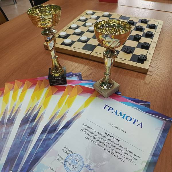 24 апреля на базе нашего колледжа прошел открытый турнир по шашкам "Твой ход", приуроченный к празднованию 80-летия Победы в Великой Отечественой войне, среди студентов профессиональных образовательных организаций г.Твери. В турнире приняли участие студенты 4 колледжей г.Твери. Места распределились следующим образом: