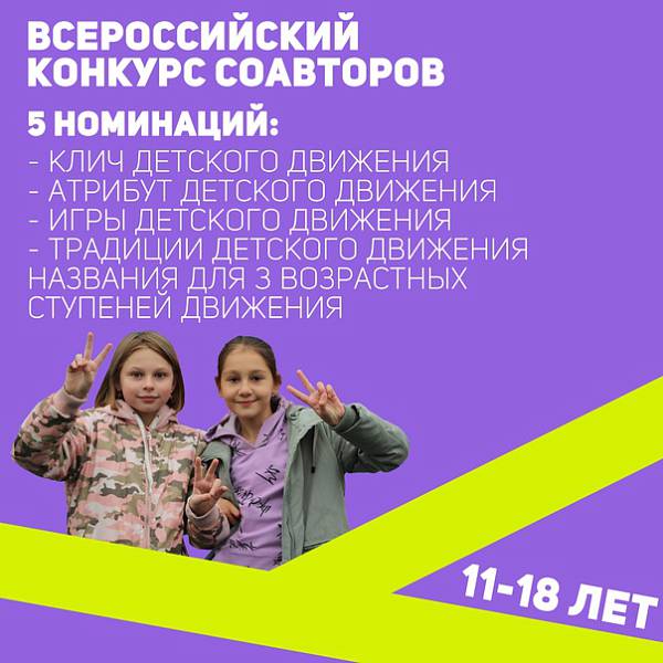 Стартовал Всероссийский конкурс соавторов детского движения. Какое название подойдёт самому масштабному и современному движению детей и молодежи? Скорее генерируй идеи, собирай собственную команду и становись соавтором детского движения!