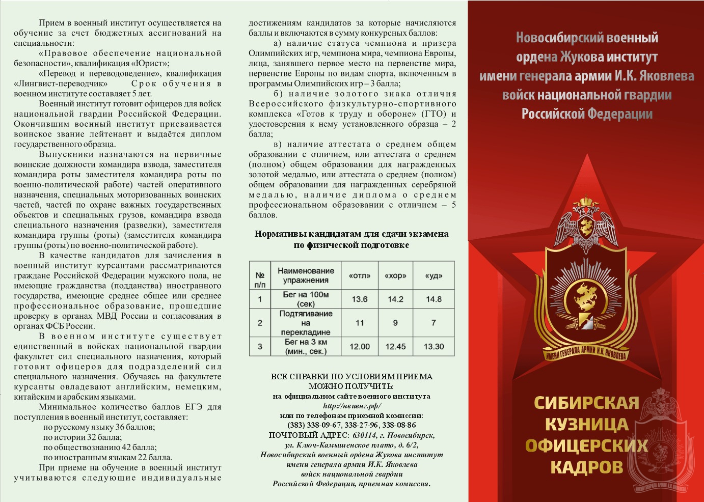 Новосибирский военный ордена Жукова институт имени И.К. Яковлева войск национальной гвардии