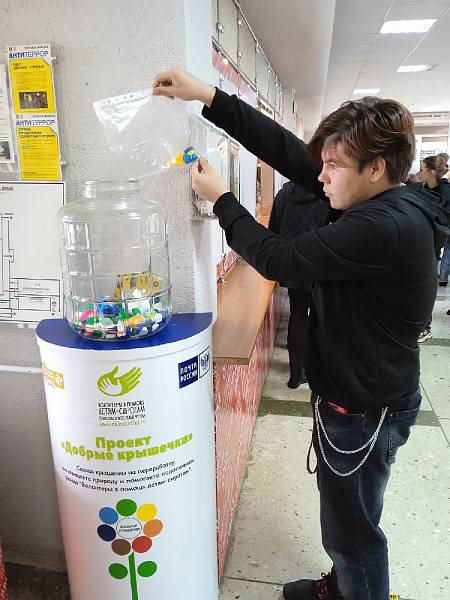 15 октября 2021 года в рамках XVI Межрегионального детско-юношеского Фестиваля "Эта Земля твоя и моя! " студенты группы 3МК приняли участие в Акции "Добрые крышечки". «Добрые крышечки» – это российский эколого-благотворительный волонтерский проект, имеющий двойную цель: сделать наш мир чище и помочь детям, которым нужна поддержка. Проект организован совместно Общественным движением «ДОБРЫЕ КРЫШЕЧКИ» и Благотворительным фондом «Волонтеры в помощь детям-сиротам». Пластиковые крышечки от бутылок и пакетов собираются в различных пунктах приема и скапливаются на базах. Затем крупная партия крышечек отправляется на завод по переработке пластика. Завод взвешивает сырье и переводит денежные средства за собранные крышечки на счет БФ «Волонтеры в помощь детям-сиротам».