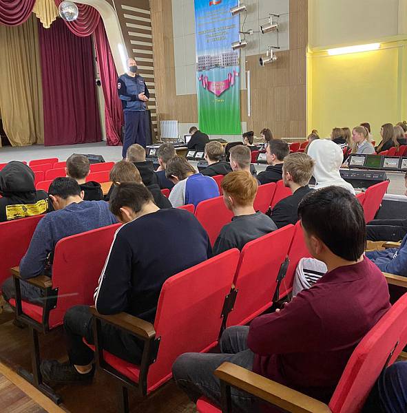 19 января 2022 года в колледже состоялась встреча старшего инспектора отдела ГИБДД УМВД России по г.Твери Григорьева А.В. со студентами 1 курса. Инспектор напомнил ребятам о необходимости соблюдения правил дорожного движения при переходе проезжей части дороги по регулируемому и нерегулируемому пешеходному переходу, при езде на велосипеде, скутере, питбайке, о необходимости пристегиваться ремнем безопасности при езде на автомобиле. Также студенты просмотрели видеоролики, в которых были засняты реальные ДТП с участием пешеходов г.Твери и обсудили вместе с инспектором, кто в каждом конкретном ДТП нарушил правила ПДД.