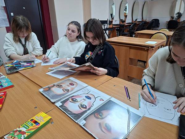Школьники ознакомились с первоначальными навыками выполнения фантазийного макияжа. В работе использовались цветные карандаши, фломастеры, блестки, стразы, пайетки. Все справились с заданием. Занятия были интересны и проходили в дружественной атмосфере. По окончании занятия все участникам были выданы сертификаты.