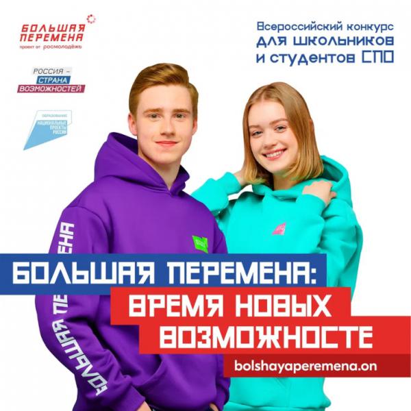 Цель конкурса – помощь учащимся раскрыть те способности, которые не попадают в традиционную систему обучения. Все мы – разные. «Большая перемена» намерена доказать, что не только олимпиадник, условно, по химии и математике, может быть успешным. Вы можете стать участником конкурса «Большая перемена» на официальном сайте конкурса: https://bolshayaperemena.online/