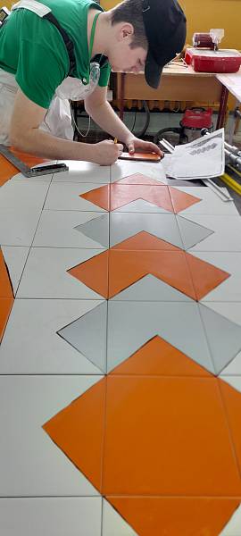 Чемпионат «Профессионалы» перевалил за экватор. Сегодня третий день чемпионата, а у наших участников по компетенции Облицовка плиткой второй из трех рабочих дней. Продолжается работа над модулями Б и В. Это раскрой плитки и ее монтаж. Еще 4 часа напряженной работы. Основная часть задания должна быть выполнена. Впереди последний рабочий день выполнения еще двух модулей Е и Ж. Пожелаем успехов конкурсантам.