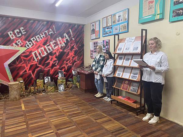 Позже в музее колледжа прошел урок мужества «Пусть поколения помнят» для студентов групп 1СИВ3 и 1МК. В литературной композиции были задействованы студентки группы 1ТПИ под руководством библиотекаря Козлова И.Е.