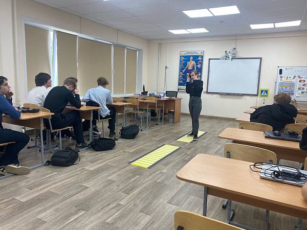 С учениками 10 «Б» класса были закреплены правила поведения на дороге и пешеходных переходах, изучены особенности ношения световозвращающих элементов. Особое внимание было уделено практическим занятиям по соблюдению мер безопасности при переходе проезжей части.