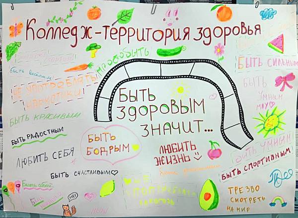 8-9 июня 2023 года в рамках месячника антинаркотической направленности в колледже прошла акция "Колледж - территория здоровья". Студенты создали плакат, на котором продолжили фразу: "Быть здоровым значит...".