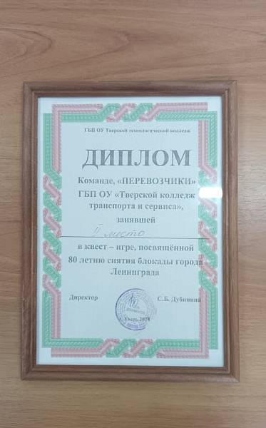 26 января 2024 года команда студентов группы 1ОП приняли участие в квест-игре, посвященной 80-летию снятия блокады города Ленинграда, которая прошла на базе ГБПОУ «Тверской технологический колледж».