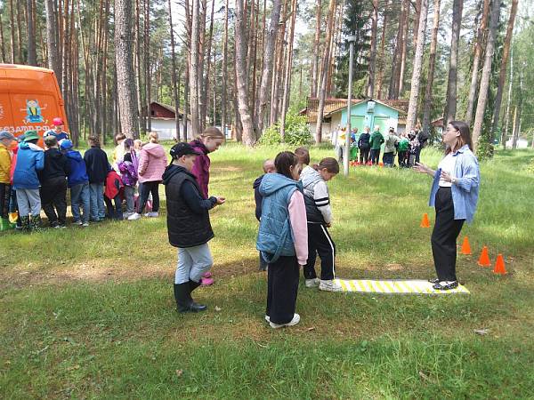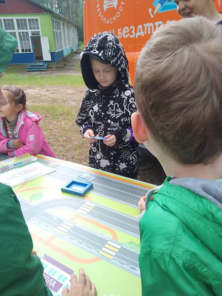 В рамках реализации плана-графика выездных мероприятий летней оздоровительной кампании 9 июня 2025 г. сотрудники Центра по профилактике детского дорожно-транспортного травматизма провели увлекательное профилактическое мероприятие на базе МОУ ДО ДООЛ «Ромашка» Калининского района Тверской области по безопасности дорожного движения. Ребята приняли участие в настольных играх, с помощью которых закрепили правила поведения на дороге для пешеходов и велосипедистов; в активных упражнениях побывали в роли водителей и пешеходов, а также получили первые навыки оказания первой помощи на интерактивном тренажере «Александр».