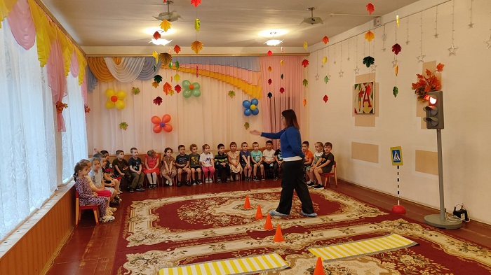 29 октября 2024 г. сотрудники Центра по профилактике детского дорожно-транспортного травматизма провели профилактические уроки с воспитанниками МДОУ "Детский сад № 4" г. Кимры по безопасности дорожного движения. Вместе с педагогом юные ученики вспомнили правила поведения в общественном транспорте и на улице. Во время практических упражнений ребята освоили правила использования регулируемых и нерегулируемых пешеходных переходов.