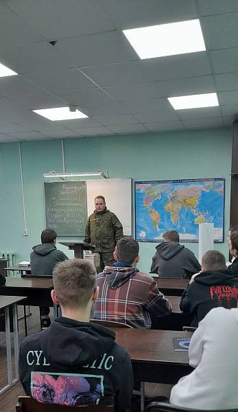 30 ноября 2023 года представитель в/ч 19089 города Твери провел профориентационное мероприятие с выпускниками 2024 года, студентами 3-их курсов нашего колледжа. Старший матрос ознакомил обучающихся с условиями службы в рядах Вооруженных Сил РФ, в том числе контрактной.