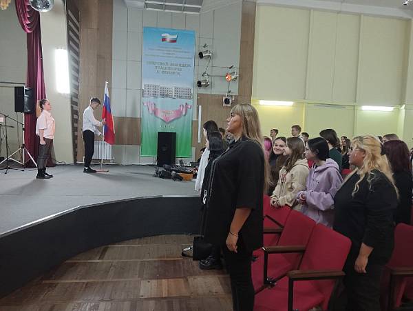 3 октября 2022 года в колледже вновь состоялся "Разговор о важном". Темой занятия стал приближающийся профессиональный праздник День учителя. По традиции занятие началось с выноса флага РФ и исполнения гимна РФ.