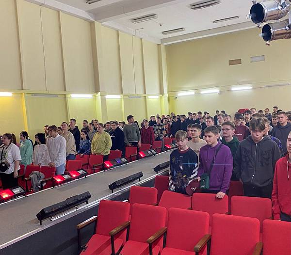 По традиции занятия начались с выноса флага РФ и исполнения государственного гимна.
