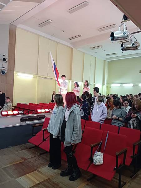 Занятия начались с выноса флага РФ и исполнения гимна РФ.