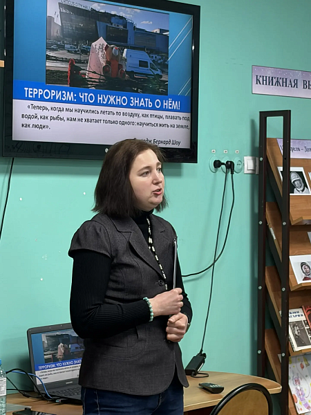 24 апреля студенты нашего колледжа приняли участие в важном и актуальном мультимедийном уроке «Терроризм: что нужно знать о нём!». Занятие провела сотрудница библиотеки им. А. М. Горького.