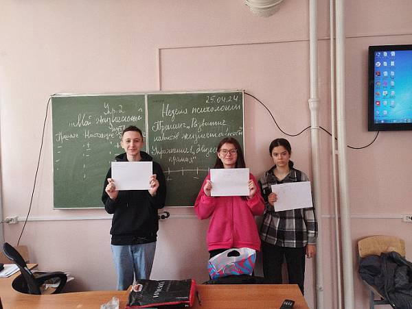 Всю неделю в колледже проходят тренинговые занятия в рамках недели психологии. Педагог-психолог колледжа Фалькова М.И. со студентами проводит тренинги, направленные на развитие навыков жизнестойкости, навыков общения, социальной гибкости и дружелюбия, развитие профессионального самоопределения. Студенты учатся актуализировать личностные ресурсы, формировать позитивные социальные установки и конструктивные способы взаимодействия, а также развивают навыки профессиональной самопрезентации.