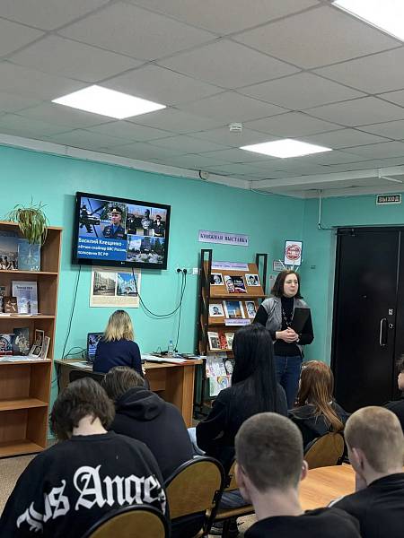 В нашем колледже состоялся мультимедийный урок «Участники СВО – герои нашего времени», организованный сотрудниками библиотеки им. А.М. Горького. В ходе мероприятия студенты познакомились с содержанием Специальной военной операции, её целями и задачами, а также узнали о различных родах и видах войск, участвующих в боевых действиях.
