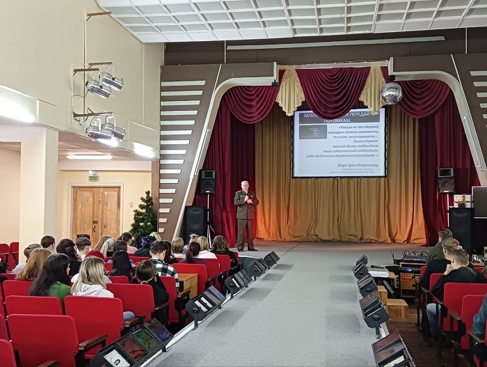 2 декабря 2022 года, в преддверии Дня неизвестного солдата и Дня героев Отечества, в актовом зале колледжа прошел Урок мужества с приглашением заместителя председателя Тверского областного отделения Всероссийской общественной организации ветеранов "Боевое Братство", члена Общественной палаты Тверской области, члена регионального общественного совета проекта "Историческая память» Баркова С.В.