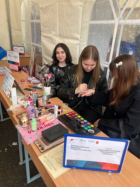 18 апреля 2025 года на территории торгового центра «РИО» студенты нашего колледжа приняли участие в региональном этапе Всероссийской ярмарки трудоустройства «Работа России. Время возможностей». Студенты специальности «Стилистика и искусство визажа» продемонстрировали мастер - класс по выполнению элементов фейс- арта и боди- арта с индивидуальным выбором рисунка для участников ярмарки. Мастер - класс посетили более 50 школьников города Твери.